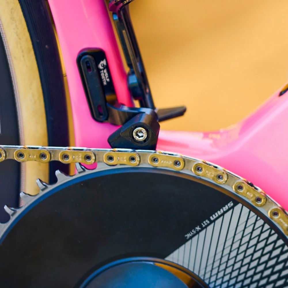 The new Wolf Tooth LoneWolf Aero Chainguide for Cervelo prevents dropped chains on select Cervelo models when equipped with a 1x drivetrain. This product has been tested and developed alongside Team Jumbo-Visma, who have been racing with this in some of road cycling’s biggest races, winning the Maglia Rosa in the 2023 Giro d'Italia.