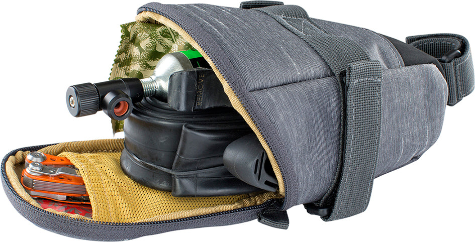 A well made underseat pocket for essential items like tyre levers,CO2 inflator and spare tube. This saddlebag is lightweight and made of highly water-repellant material, it is easily attached to any regular seatpost with velcro fasteners. You can leave the bag in place and access your spares as you need them.