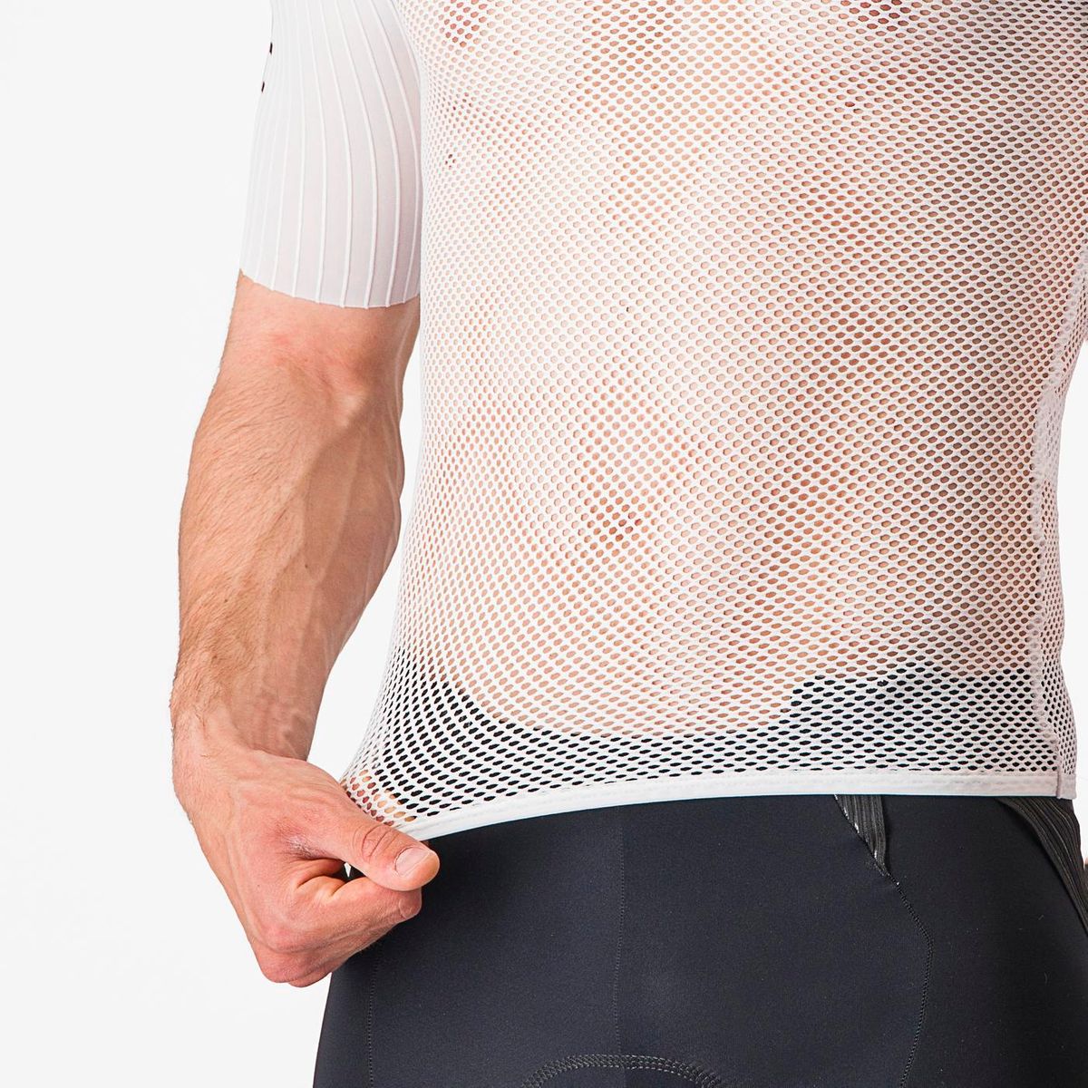 AERO BASE LAYER FOR AERODYNAMIC GAINS. If you have a keen eye, you'll have noticed the lines running down the arms of our pro riders when they race TTs. These aero ribs are our Bolero sleeves. The ribs create aerodynamic trip strips, making our Aero Jerseys and San Remo Speedsuits even faster. We've incorporated this short-sleeve version into a base layer for road racing. Not only will you be faster, but the open mesh of the base layer will keep you cool and dry.