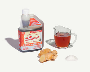 Our Ginger Mapleaid is made with Pure Vermont Maple Syrup that has the minerals, amino acids, and antioxidants to make it an ideal athletic fuel. Real ginger soothes your stomach letting you enjoy the calories needed to perform, while sea salt replaces lost electrolytes. Enjoy UnTapped’s take on the classic drink Vermont’s farmers have used for generations.