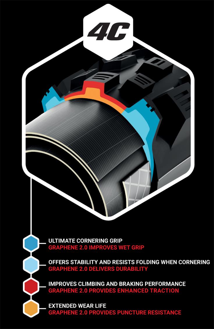 Graphene 2.0 compound reduces rolling resistance, increasing range and battery life.