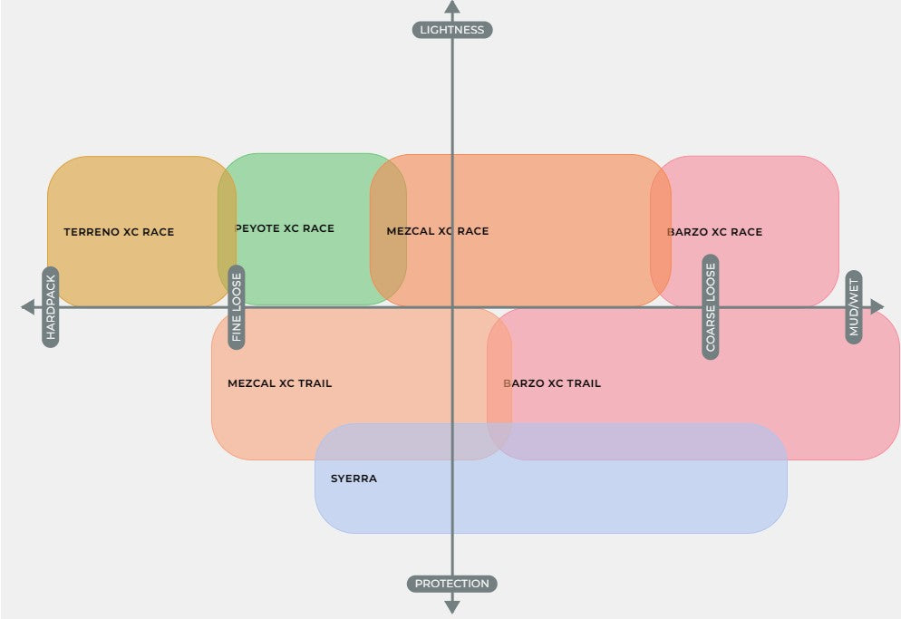 Tread design combines the grip of the Trail category with the speed of the XC category