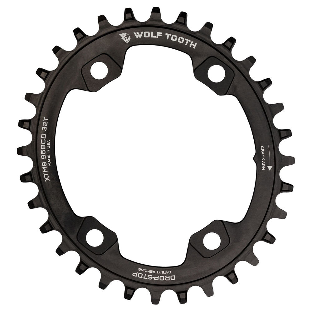 Looking for a 1X chainring for your new Shimano XT, SLX or Deore crankset with the proven chain retention of our Drop-Stop® chainrings? Wolf Tooth has what you need in the form of a beautifully machined asymmetrical 96 mm BCD that provides the ideal 1X chainline of 49mm. The Drop-Stop® tooth design is the best performing on the market, with exceptional durability.