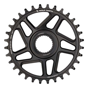 Drop-Stop technology: On Wolf Tooth’s patented wide/narrow chainring, the wide side of the tooth has maximum contact on the drive side which spreads the load and improves chainring life. The narrow side allows clearance for mud and debris which reduces friction.