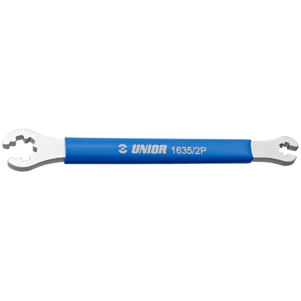The smaller end is used for nipples with a 6.4mm outside diameter, while the larger end is used for assembling and disassembling for tubeless Mavic rim inserts.