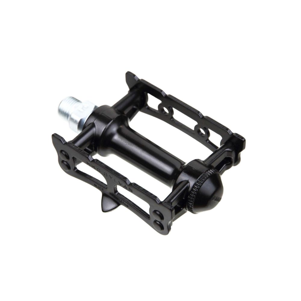 The Sylvan Track features a short two-piece single-sided cage built around a compact pedal body that allows for ample ground clearance when cornering. The Sylvan Track is designed to be used on the steep banking of a velodrome, but is also at home on the road. The cage plate tooth profile is almost smooth, so we recommend toe clips and straps with this pedal.
