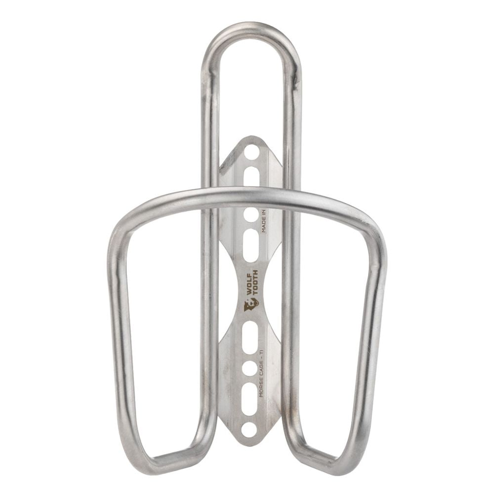 The Wolf Tooth Morse Cage is a versatile titaniumsteel bottle cage with a unique base plate that allows you to reposition the bottle placement on your bike. Named for its dot-dash-dot-dash mounting pattern, the Morse Cage base plate offers four positions that align with your bike’s bottle bosses.