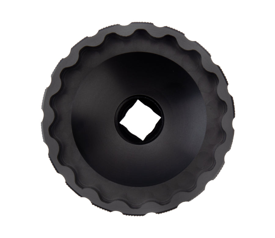 A precision CNC-machined aluminum tool for the installation and removal of select threaded bottom brackets with 36-notch tool fittings, including Praxis Works® M35. Manufactured in-house by Park Tool, anodized for easy identification and featuring a ratchet/torque wrench-compatible 3/8" drive.