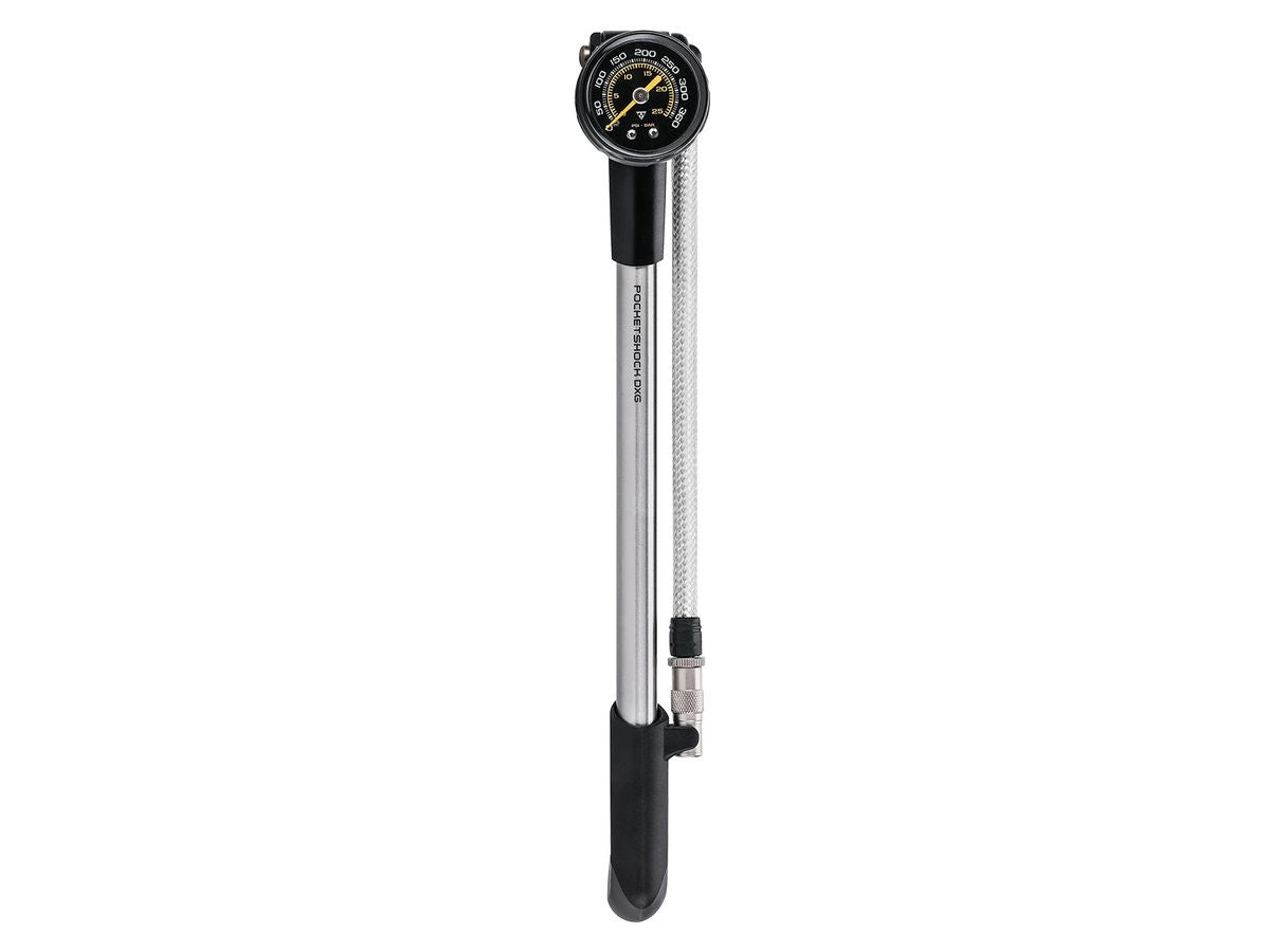 PocketShock DXG’s big brother! A precision fork and shock pump with an extended barrel for quick inflation and an easy-to-read dial gauge for accurate pressure readings up to 360 psi / 25 bar. An air release button and Pressure-Rite connector makes setting proper pressure easy and eliminates air loss when disconnecting, while the flexible hose takes stress off the valve stem when pumping.