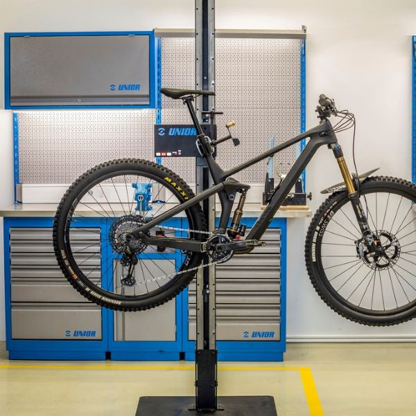 - Automatic stopping system with a build in safety feature to keep technician and bicycle on the stand safe