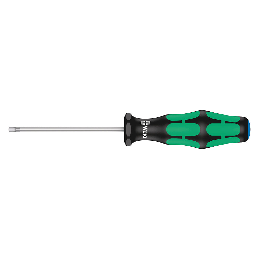 Kraftform Plus handle for comfortable ergonomic screwdriving, which avoids blisters and calluses. Hard handle zones for high working speeds, while soft handle zones guarantee a high torque transfer. PH-screwdrivers with Lasertip: The tips of Wera Lasertip screwdrivers are microscopically roughened with laser beams. This rough surface "bites" into the screw head and unintentional slipping is a thing of the past. Take it easy tool finder with colour coding by profile and size stamping - to help you find the required tool quickly and easily. T-handles with holding function to hold the hexagonal socket screw securely on the tool.